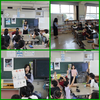 今日と明日で4年生はブックトークで「新美南吉の世界」を楽しんでいます。