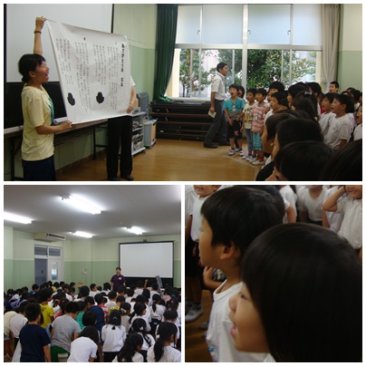 まなびの時間には、「昔遊びの会」で教えていただく方々へのお礼として歌う「ありがとうの花」の練習をしました。各学級でこれまで練習してきましたが、今日は、1年生全員がそろって、元気よくリズムにのって歌うことができました。
