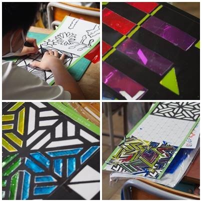 4年生図工,色とりどりの美しい作品ができそうです。