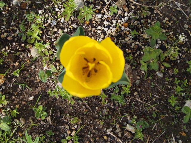昨年度の一年生がお世話をした中庭のチューリップがきれいに咲いています。
