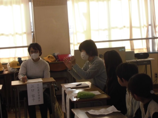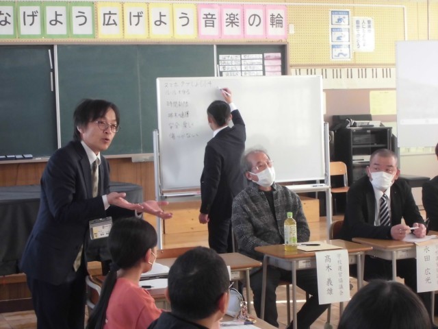 「小学生のスマートフォン利用について ~どんな使い方がよいか一緒に考えよう~」というテーマで、6年生児童8名と委員のみなさんで話し合いをしました。何才くらいから使い始めているのか、おうちの人とどんな約束をしているかなど、委員のみなさんからの質問に答える形で進みました。児童の話を通して実態を知る中で、大人も子どももスマートフォンをよりよく使うためにどうしていくとよいか、今日の会のようにきちんと話し合うことがとても大切だと感じました。参加してくださったみなさん、本当にありがとうございました。