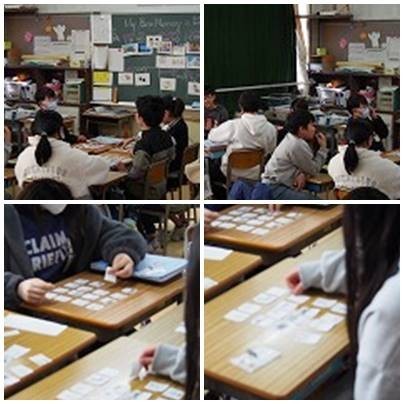 6年生外国語、ビンゴゲームをしながら、思い出を紹介する言い方を学びました。