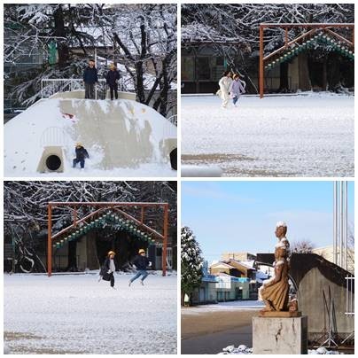 今日もうっすらと雪が積もり、運動場では朝から元気に子どもたちが遊んでいます。