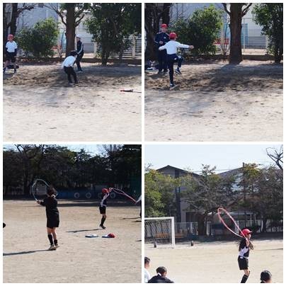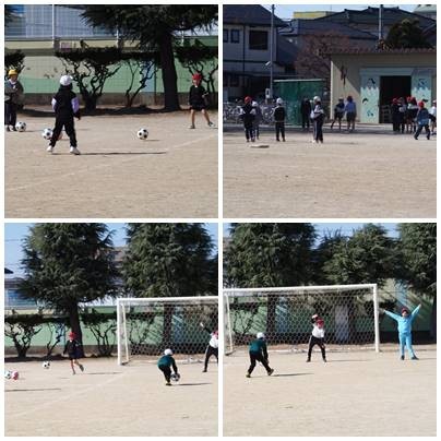 チャレンジタイムの運動場,少し暖かくなり,元気に遊んでいます。