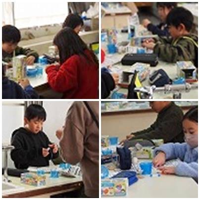 3年生理科、音のなる仕組みを調べています。説明書を読みながら実験器具をつくっています。