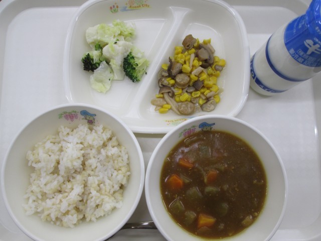 ぶたにくともやしのやきいためは、古知野西小学校の応募献立です。もやしと豚肉にラー油が入ったピリ辛のごまソースをかけます。ねぎも入れることで、彩りよく仕上げる工夫をしてくれています。