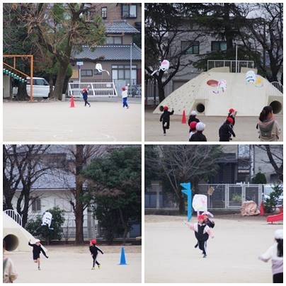 1年生生活、たこあげをしました。風が小さくやや苦戦しましたが、上手にあげることができました。
