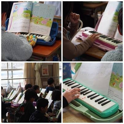 2年生音楽、鍵盤ハーモニカをつかって「春がきた」の練習です。