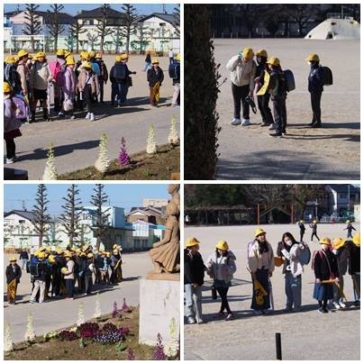 15年経った本日、全校で防災について考えました。東日本大震災や半旗の意味について、担当の先生の放送を聞きました。みんなで黙祷し、哀悼の意を捧げました。5時間目の終わりにシェイクアウト訓練を行いました。1年生も机の脚をしっかり持って、自分の命を守る行動が取れるようになりました。