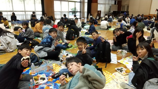 朝の元気なあいさつのあと、ラジオ体操でからだをほぐしました。