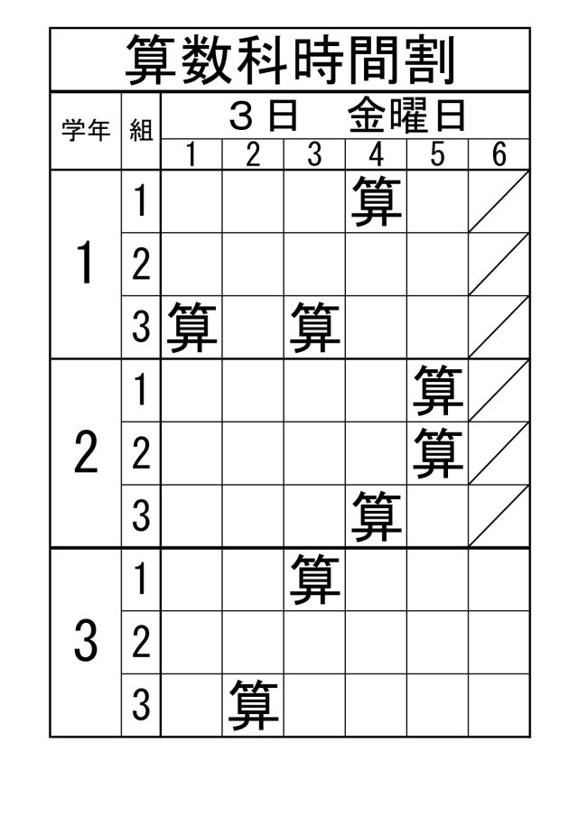 10月3日(金)1~3年生の算数の授業予定です。