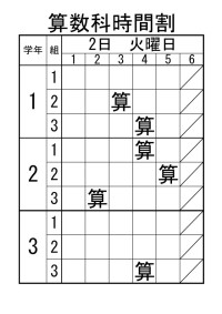 10月17日(金)1~3年生の算数の授業予定です。通常日課です。よろしくお願いいたします。