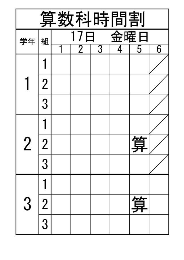 【授業見守りボランティア活動】1~3年生の算数授業予定