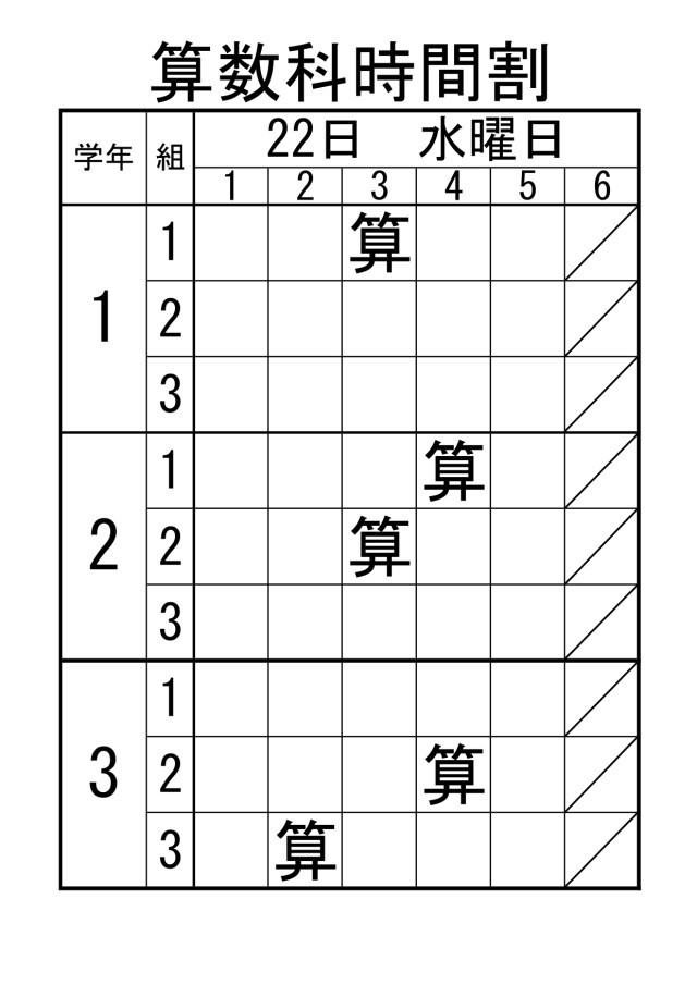 10月22日(水)1~3年生の算数の授業予定です。
