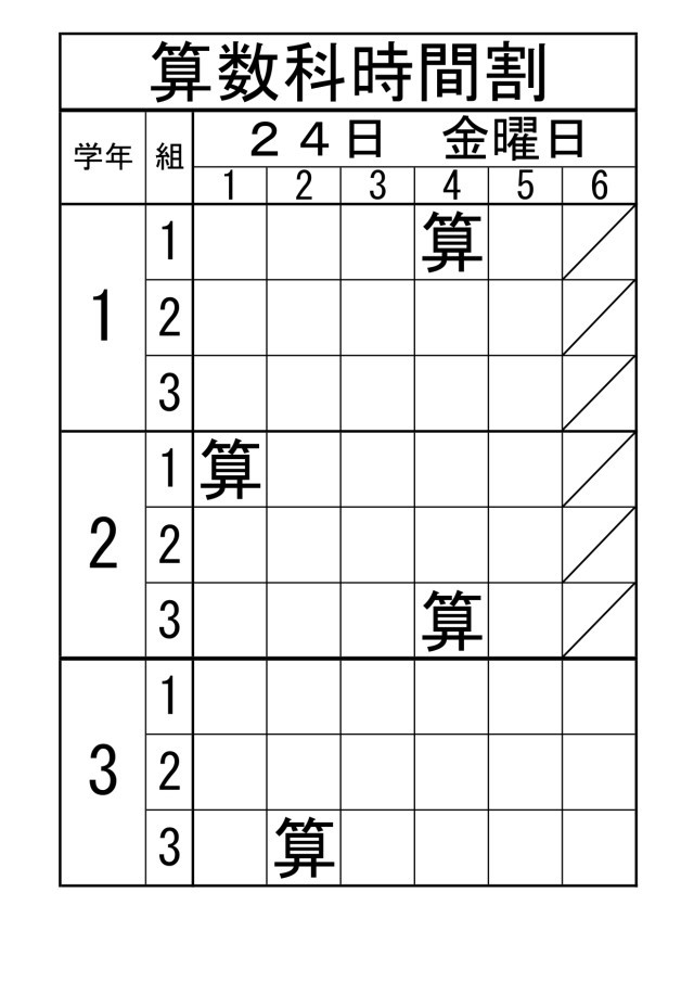 【授業見守りボランティア活動】1~3年生の算数授業予定