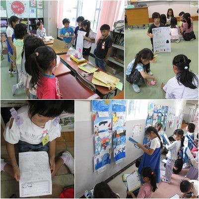 図画工作では、おはなしだいすき(読書感想画)に取り組んでいます。『11ぴきのねこ』のお話を読んで、イメージした場面を絵に表しました。音楽では、けんばんの練習を継続的に行ったり、楽器の音を鳴らして楽しんだりしています。