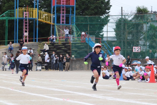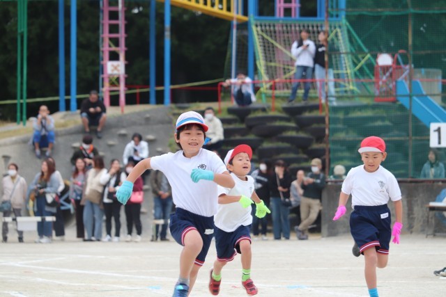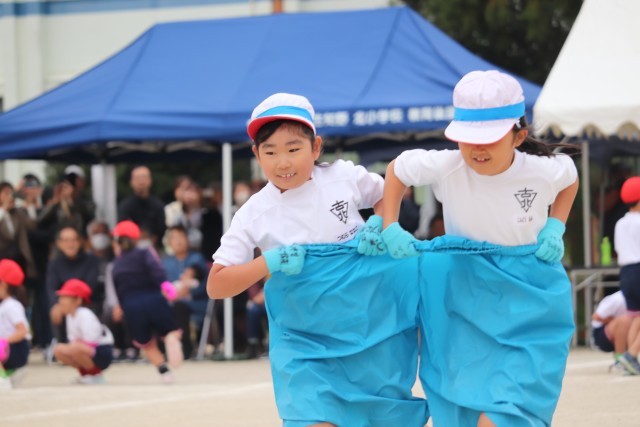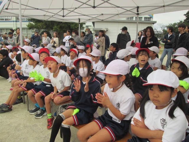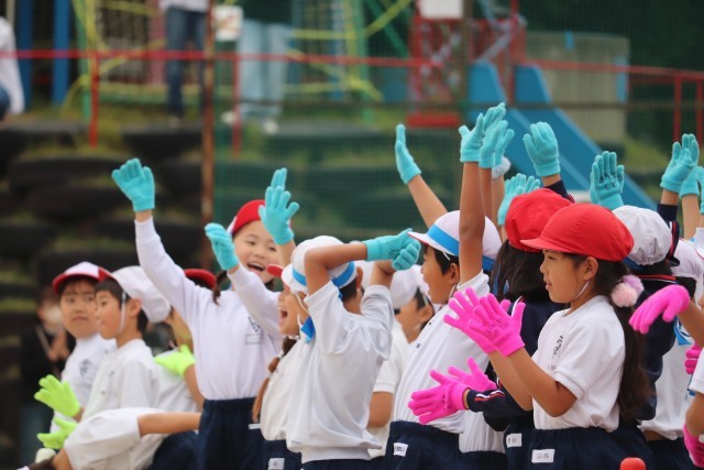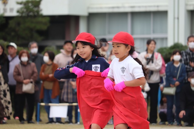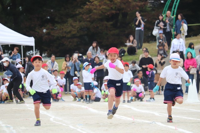 デカパンサンバでは、元気よく踊り、最後のピースポーズもきれいに決まっていました。デカパンをはいた後は、ペアと息をそろえて全力で走りきることができました。みんなが声をかけあって、チームで心を一つにできた、本当に素晴らしい運動会でした。一人一人がみんなでがんばったから、とても良い運動会になりました。良い運動会にしてくれてありがとう!