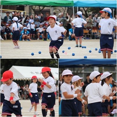 玉入れでは、踊りも玉入れも両方ともいつも以上に気合が入りましたね。音楽をよく聴いて、リズムにのって可愛らしく踊ることができました。