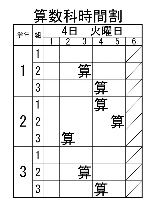 【授業見守りボランティア活動】1~3年生の算数授業予定