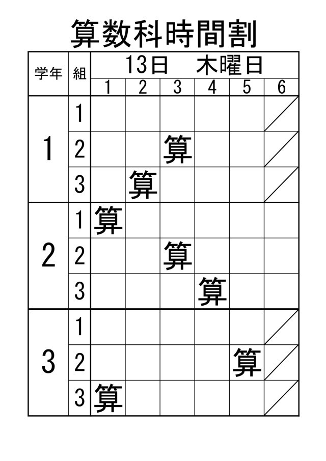 11月13日(木)の1~3年生の算数の授業予定です。