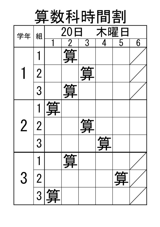 【授業見守りボランティア活動】1~3年生の算数授業予定