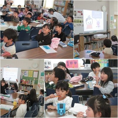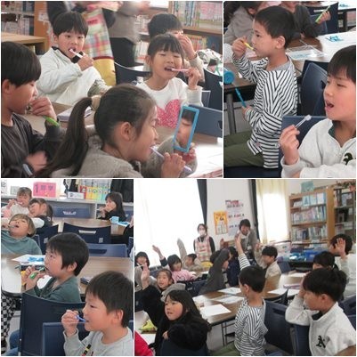 今週は、学校の外からみえた方に教えてもらう授業が2回ありました。応急手当講習会では、学校の中にある危険な場所について考え、けがをしないためにどうしたらいいのかをグループで考えました。歯科指導では、正しいはみがきの仕方や虫歯になりやすい食べ物について教えてもらいました。おうちの方による仕上げ磨きも大事だと教えてもらいましたので、ぜひ学んだことをご家庭でも話題にしていただき、ご協力いただけるとありがたいです。