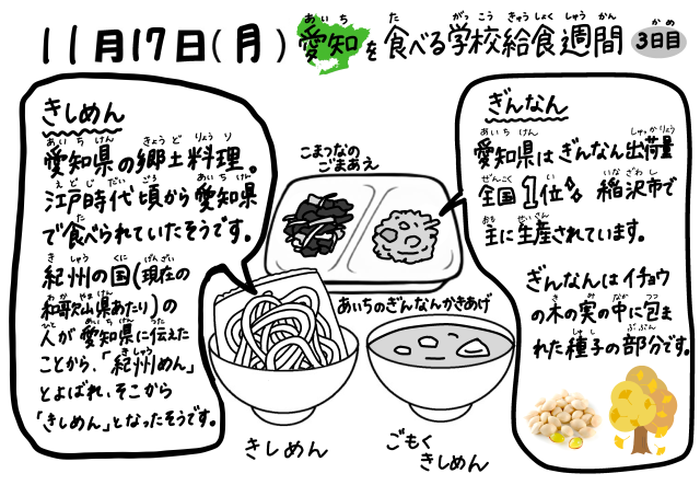 今日の給食【11月17日(月)】 愛知を食べる学校給食週間