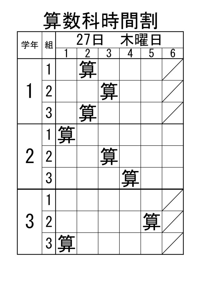 【授業見守りボランティア活動】1~3年生の算数授業予定