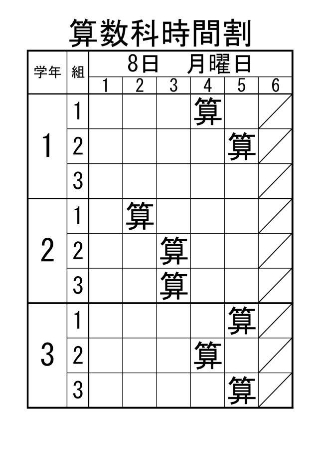【授業見守りボランティア活動】1~3年生の算数授業予定