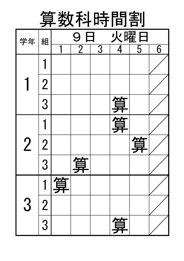 【授業見守りボランティア活動】1~3年生の算数授業予定