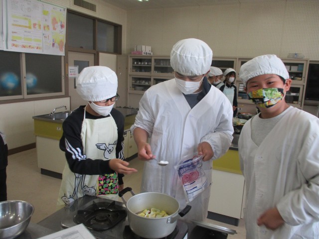 今日も6年生の1つのクラスで調理実習がありました。それぞれで工夫を凝らしながら作った料理は、おいしくできたようです。放課には、いい匂いにつられて、近くのクラスの子が見に来ていました。また、家でも作ってみてくださいね。