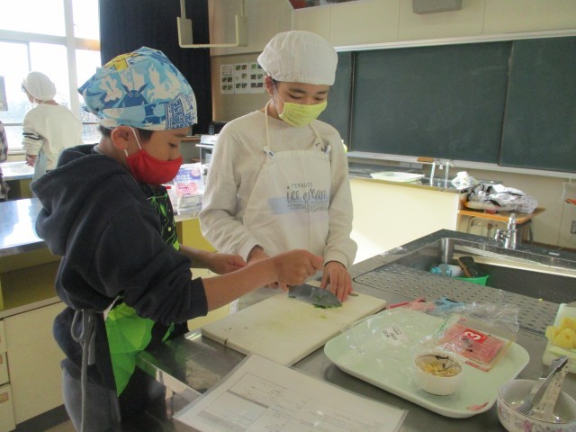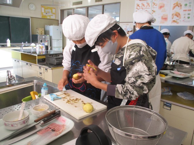 今日も、まだ調理実習を行っていないクラスが調理実習を行いました。どの班もおいしくできたようで、家でも作ってみるという話をしている子たちがたくさんいました。家族のみなさんにも、ぜひ、おいしい料理を食べてもらってみてくださいね。
