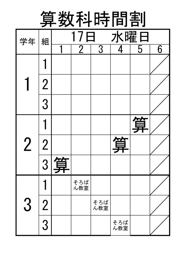 【授業見守りボランティア活動】1~3年生の算数授業予定