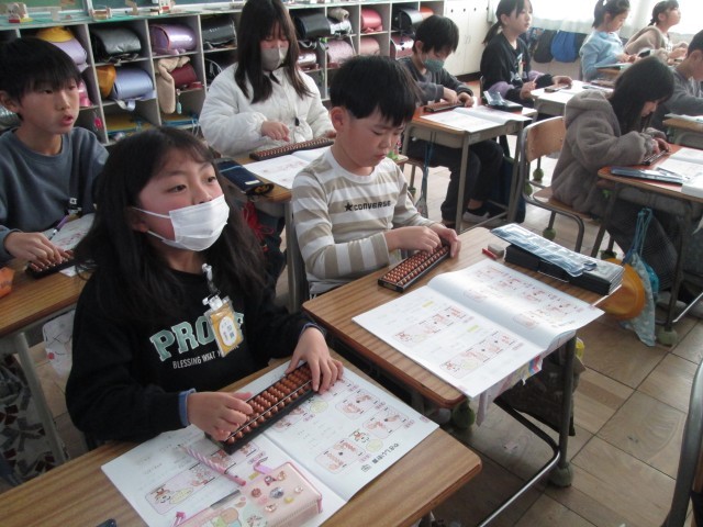 今週の17日と19日にそろばん教室がありました。そろばんを使った足し算・引き算の仕方や、フラッシュ暗算の仕方を教えてもらいました。初めてそろばんに触れる子どもたちも多くおり、みんな興味をもって授業に臨むことができました。今回学習したことをこれからの算数の授業や生活に生かすことができるといいですね。