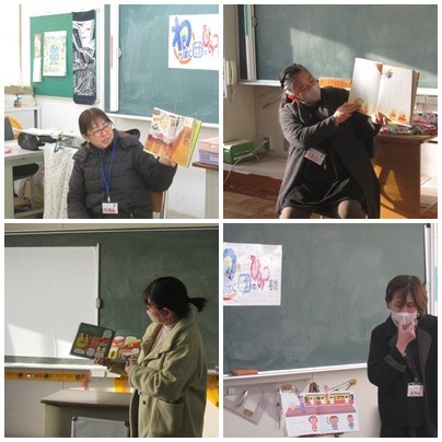 今日は、「わんぱく団のひみつ基地」さんによる読み聞かせの日でした。4年生・かがやき・2年1組の子どもたちに読み聞かせをしていただきました。