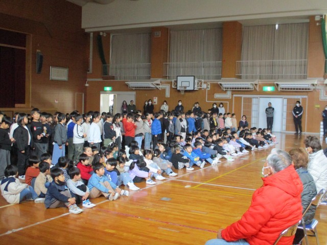 全校児童が一堂に会して感謝の気持ちを伝えました。