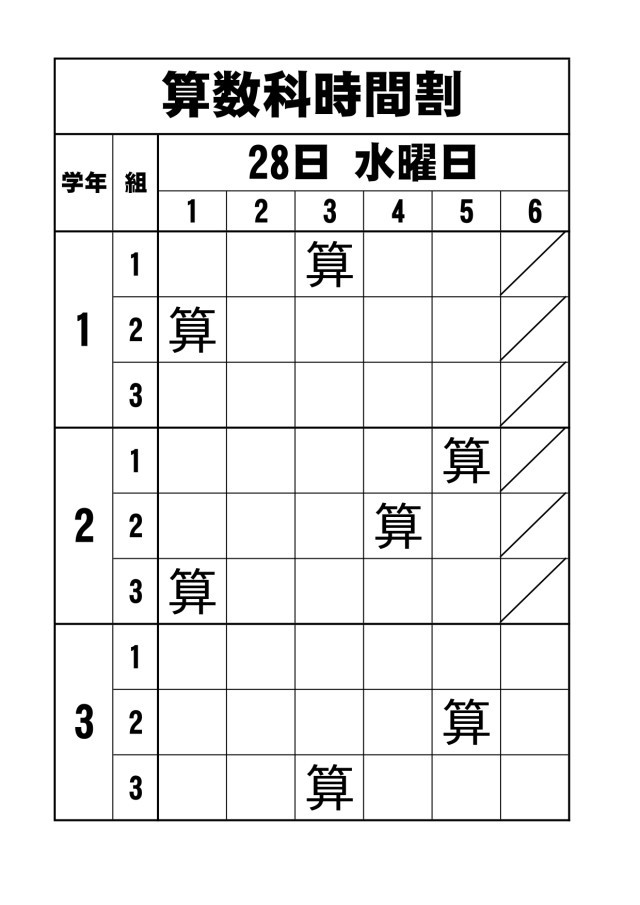 【授業見守りボランティア活動】1~3年生の算数授業予定