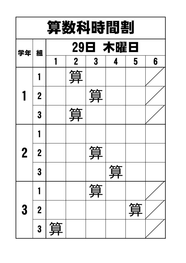 【授業見守りボランティア活動】1~3年生の算数授業予定