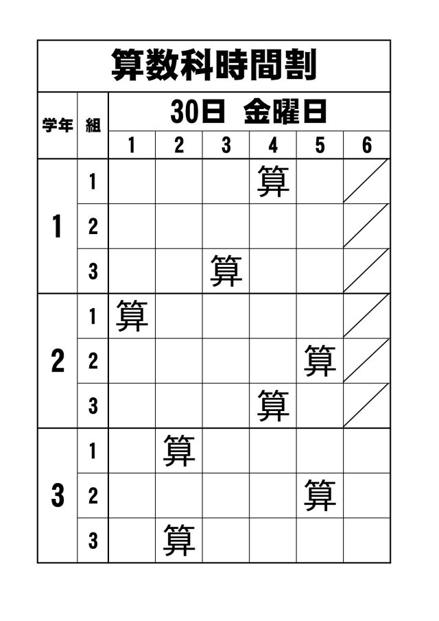 【授業見守りボランティア活動】1~3年生の算数授業予定