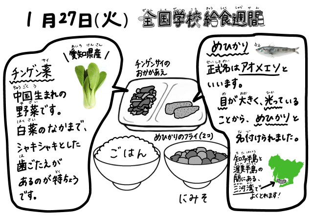 今日の給食【1月27日(火)】 全国学校給食週間 三河地方の献立