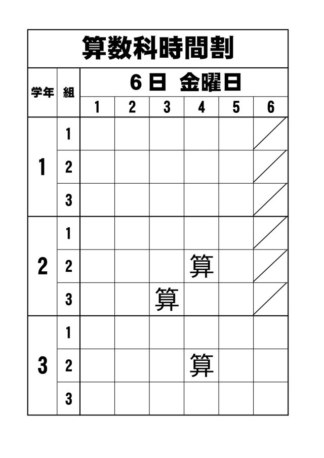 【授業見守りボランティア活動】1~3年生の算数授業予定