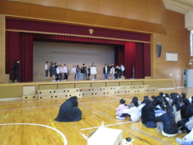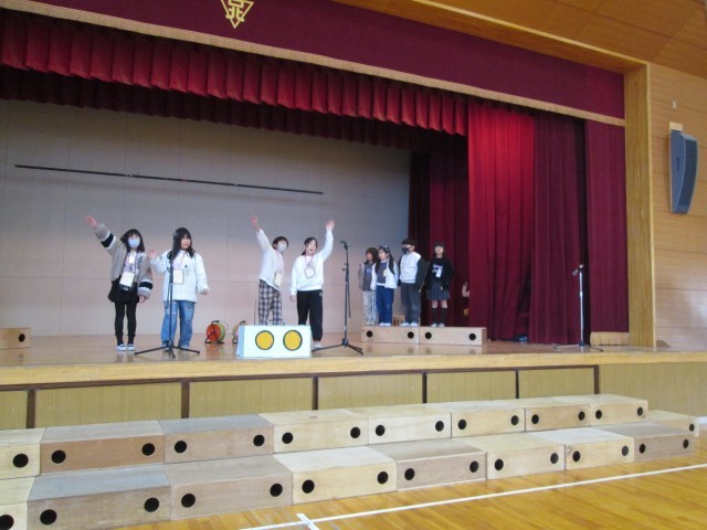 先週金曜日に、初めて学級ごとの発表をし合いました。初めてだったこともあり、声の大きさや動きなど、まだまだ改善するところはたくさんありました。体育館での練習後、学級ごとに教室で練習し、修正できました。とても有意義な時間になりました。