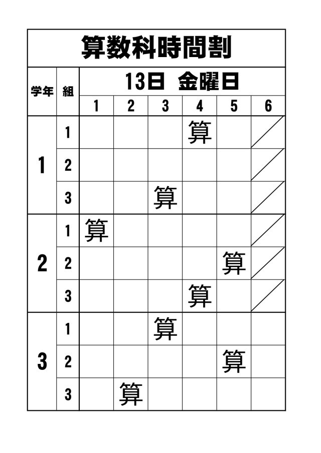 【授業見守りボランティア活動】1~3年生の算数授業予定