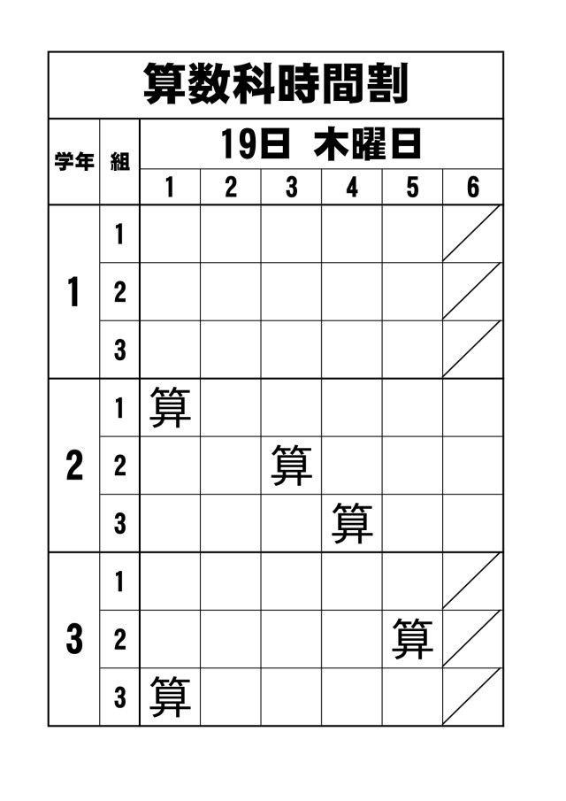 【授業見守りボランティア活動】1~3年生の算数授業予定