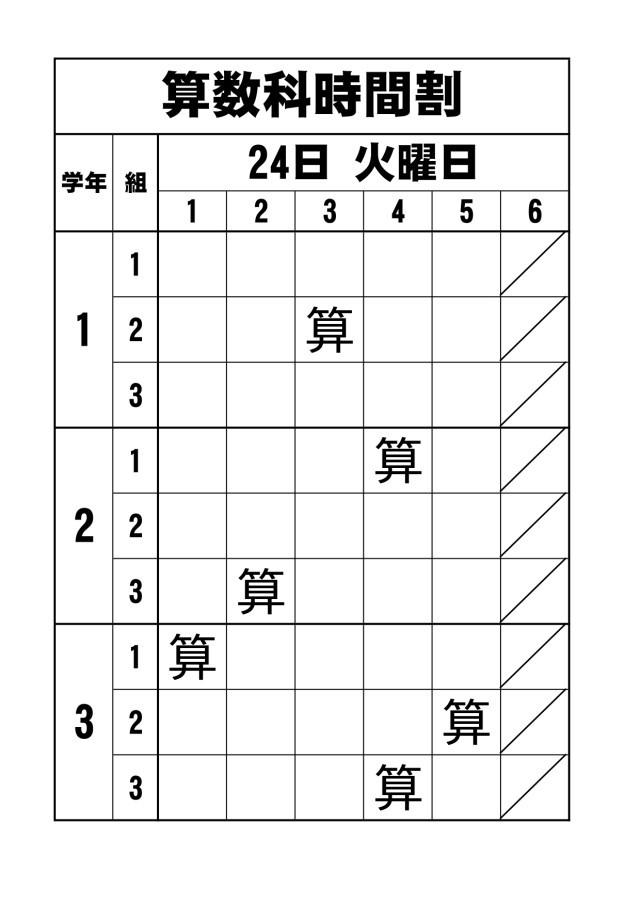 【授業見守りボランティア活動】1~3年生の算数授業予定