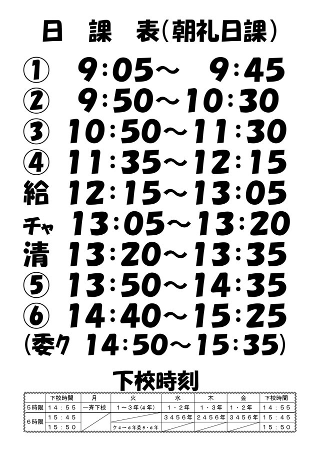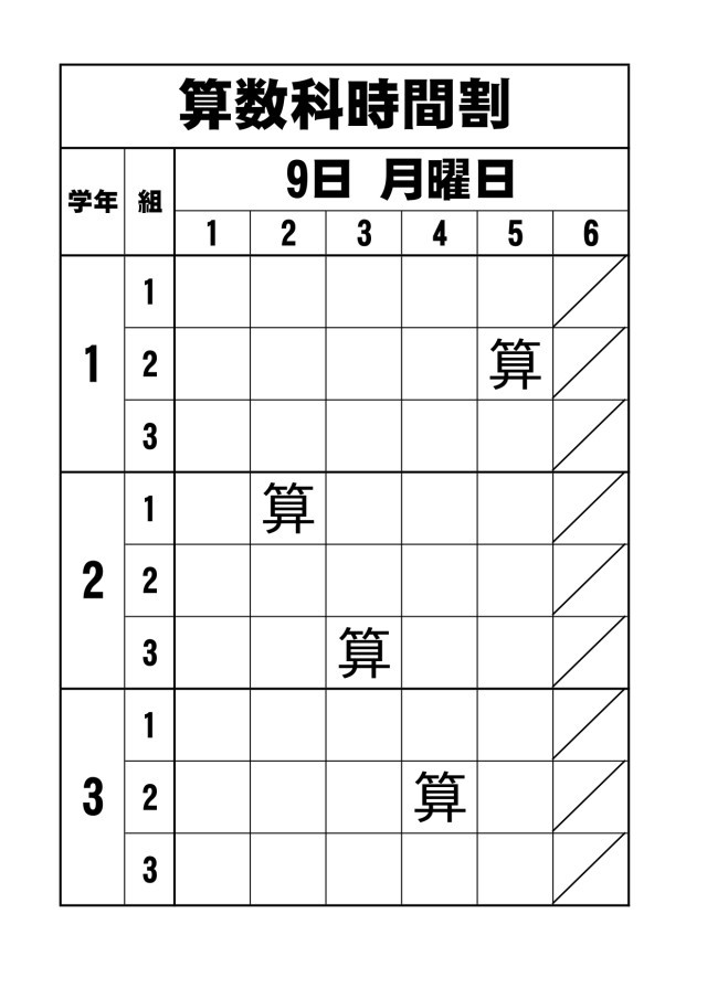 【授業見守りボランティア活動】1~3年生の算数授業予定