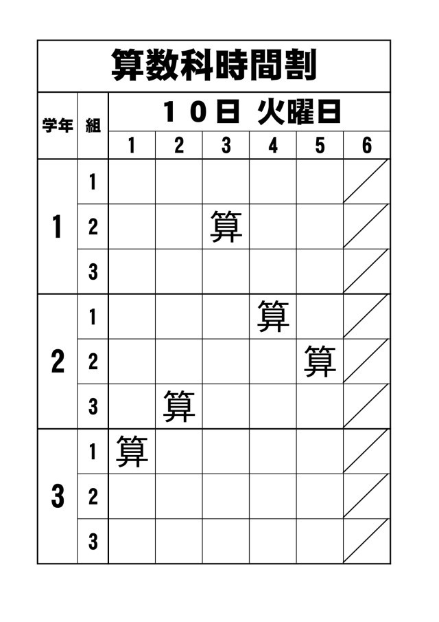 【授業見守りボランティア活動】1~3年生の算数授業予定