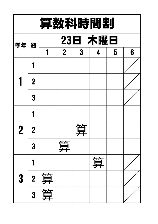 4月23日(木)の1~3年生の算数の授業予定です。