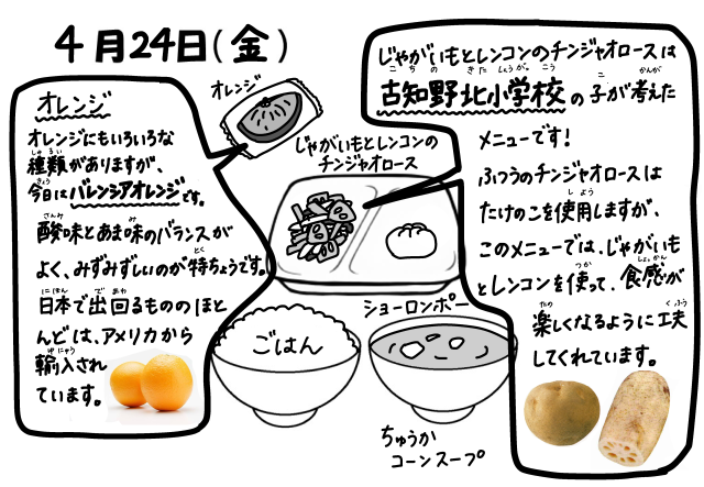 今日の給食【4月24日(金)】 応募献立(古北小)