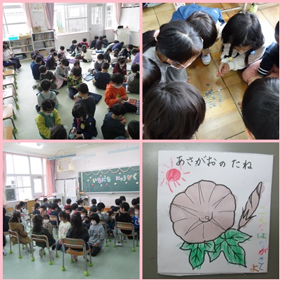 今日まで,学校行事を紹介する絵を描いたり,プレゼントするアサガオの種の袋を作ったり,一緒に遊ぶ方法を考えたり,どんな風に進行していったらいいのかを工夫したり…みんなの知恵を集めて一生懸命準備しましたね。